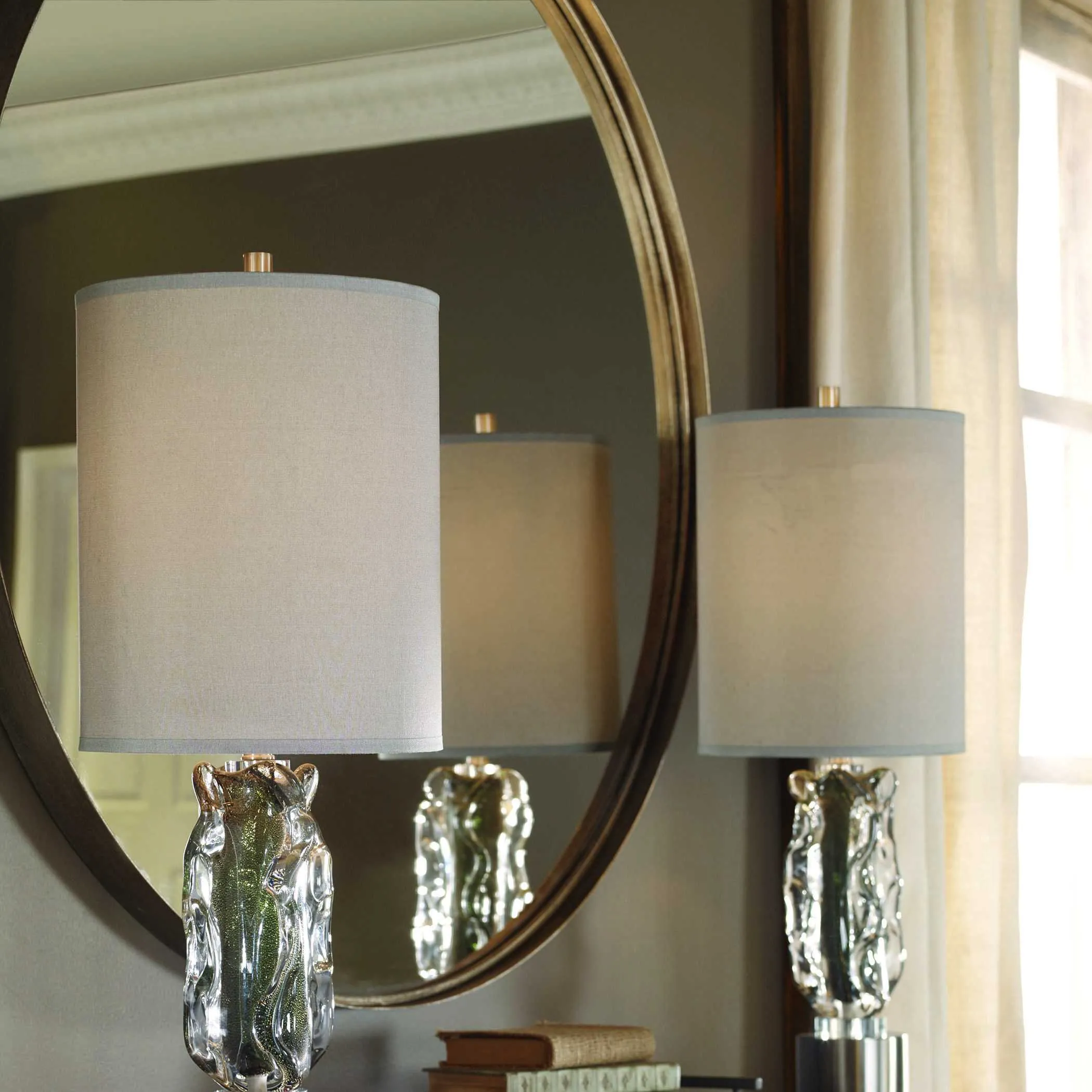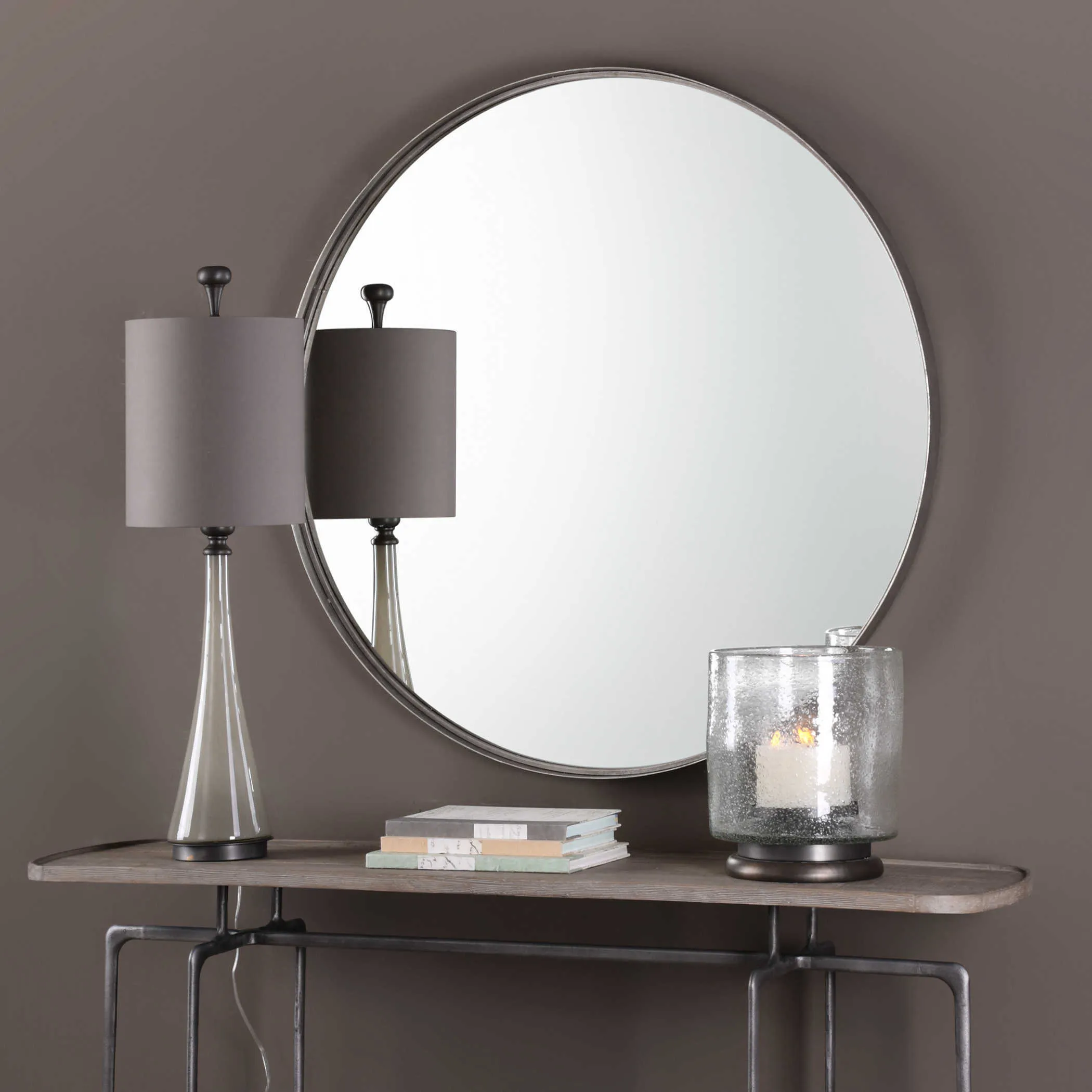 The Agoura Round Mirror by Revelation may be available at Four States Furniture in the Texarkana, Hope and Texarkana areas. Please contact us to check availability.