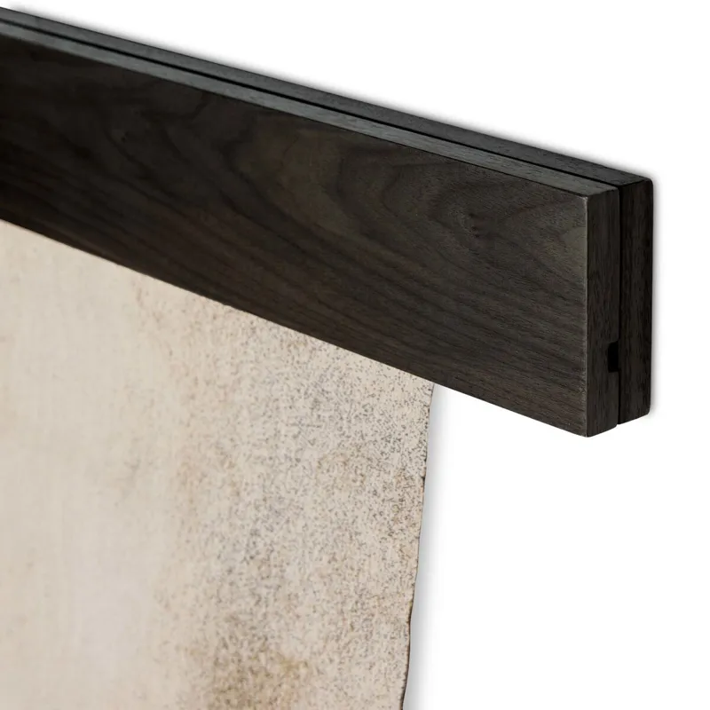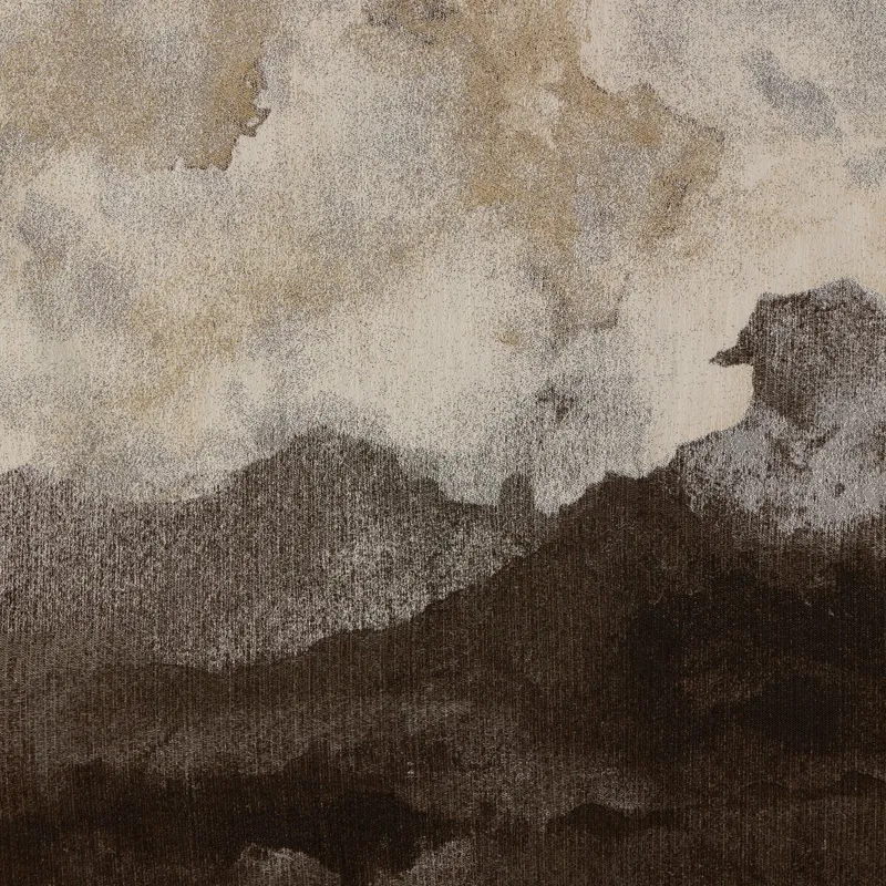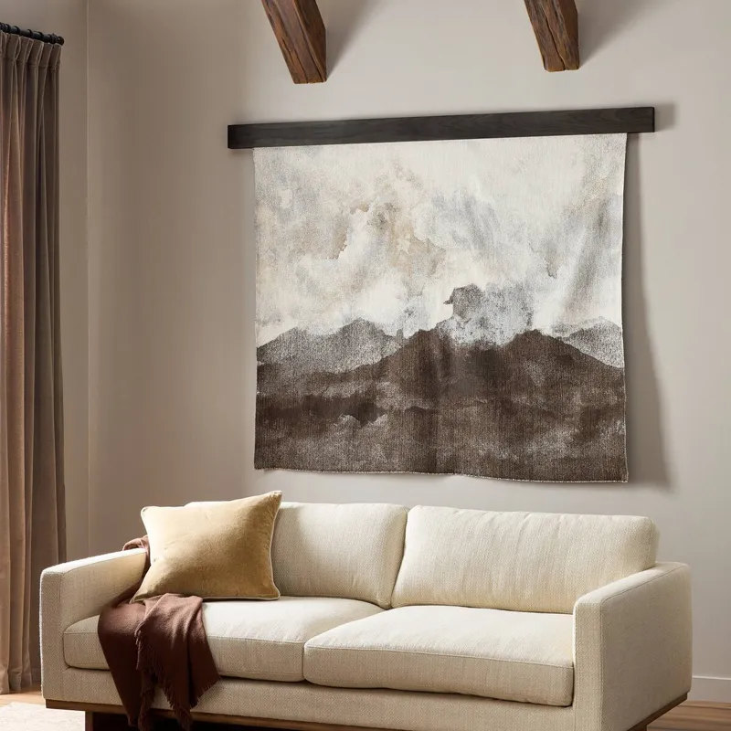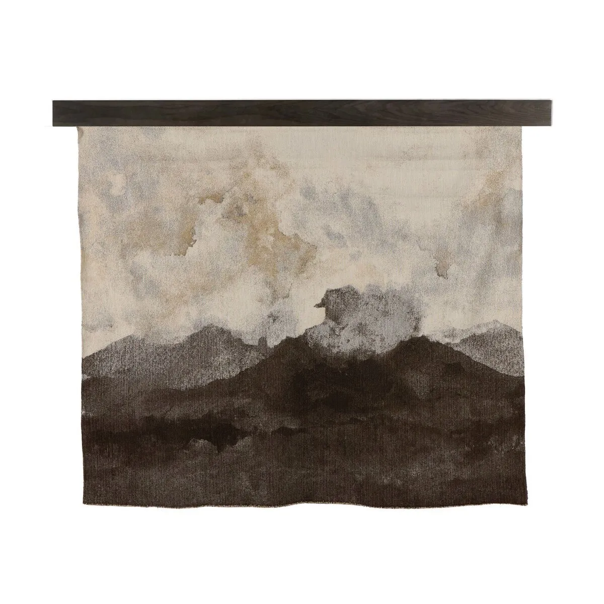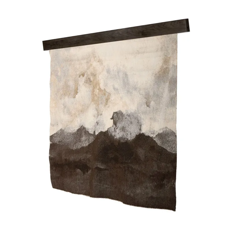 A Mexico City native, Matera is an abstract artist specializing in acrylic and mixed media works. She paints outdoors exclusively, inspired by the changing weather which she uses to guide her intuitive process. This piece is printed on a textural tapestry, finished with an eyelash fringe detail at top and bottom. Handmade in Austin, Texas.