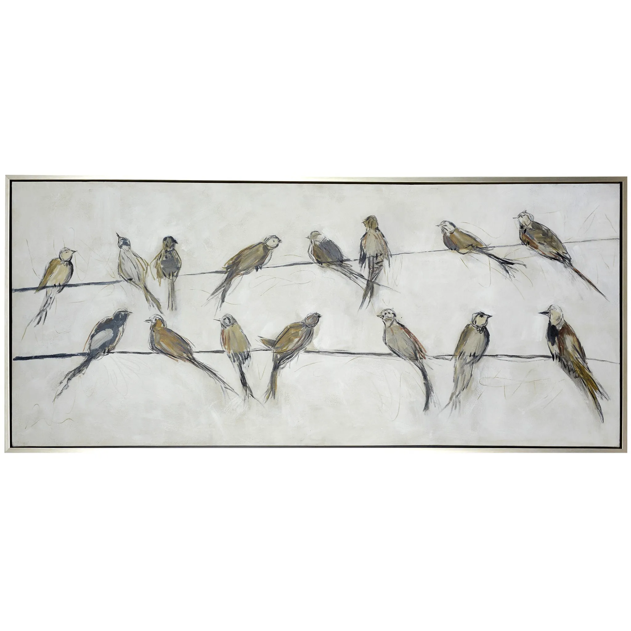 BIRDS ON WIRE FRAMED CANVAS ART | Hand Painted Abstract Birds | 1.5 inch Frame