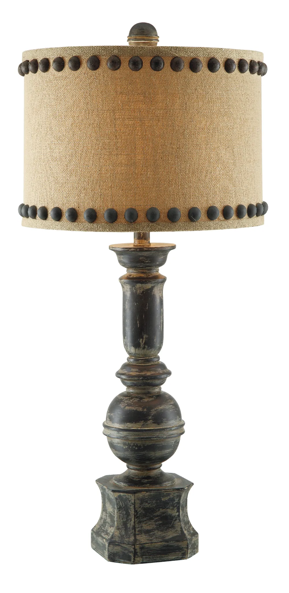 Iron Baluster Table Lamp 32"Ht.,Resin Antique Iron Finish 15 x 15 x 10 Burlap Nail Head