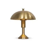 Inspired by 1920s banker lights, a brass-finished metal lamp brightens any workspace or tabletop with a warm glow. A stepped base and thick post add presence.