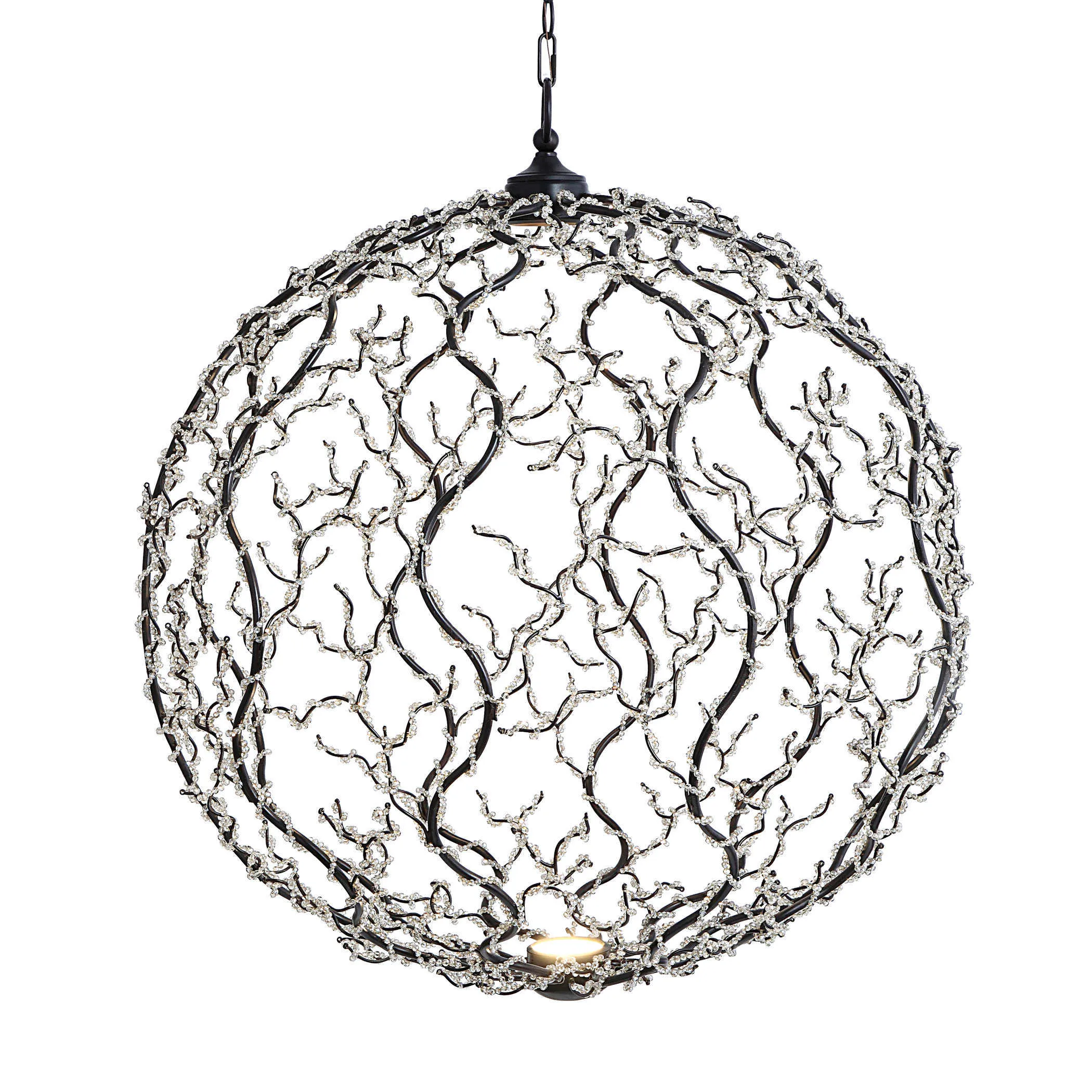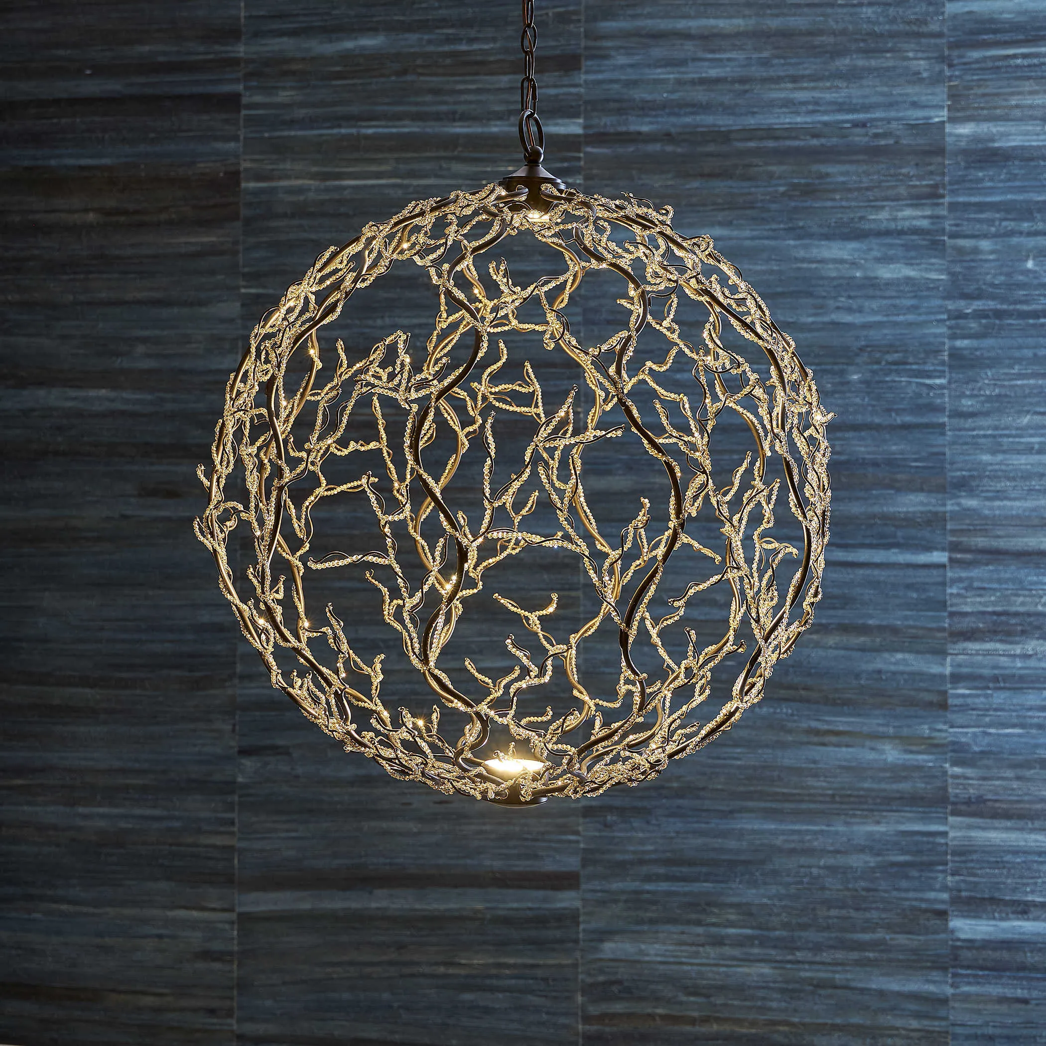 A beautiful orb in a rich oil rubbed bronze finish that plays up a botanical feel with the look of vines growing up & around woven with elegant cognac crystal beads. Light radiates inside from the 2-22w COB Dimmable LEDs included. It has 3000K,CRI of 80, 30,000 hour life and is dimmable with a Lutron SKYLARK SCL-153P Dimmer. Supplied with 15' wire & 7' chain.