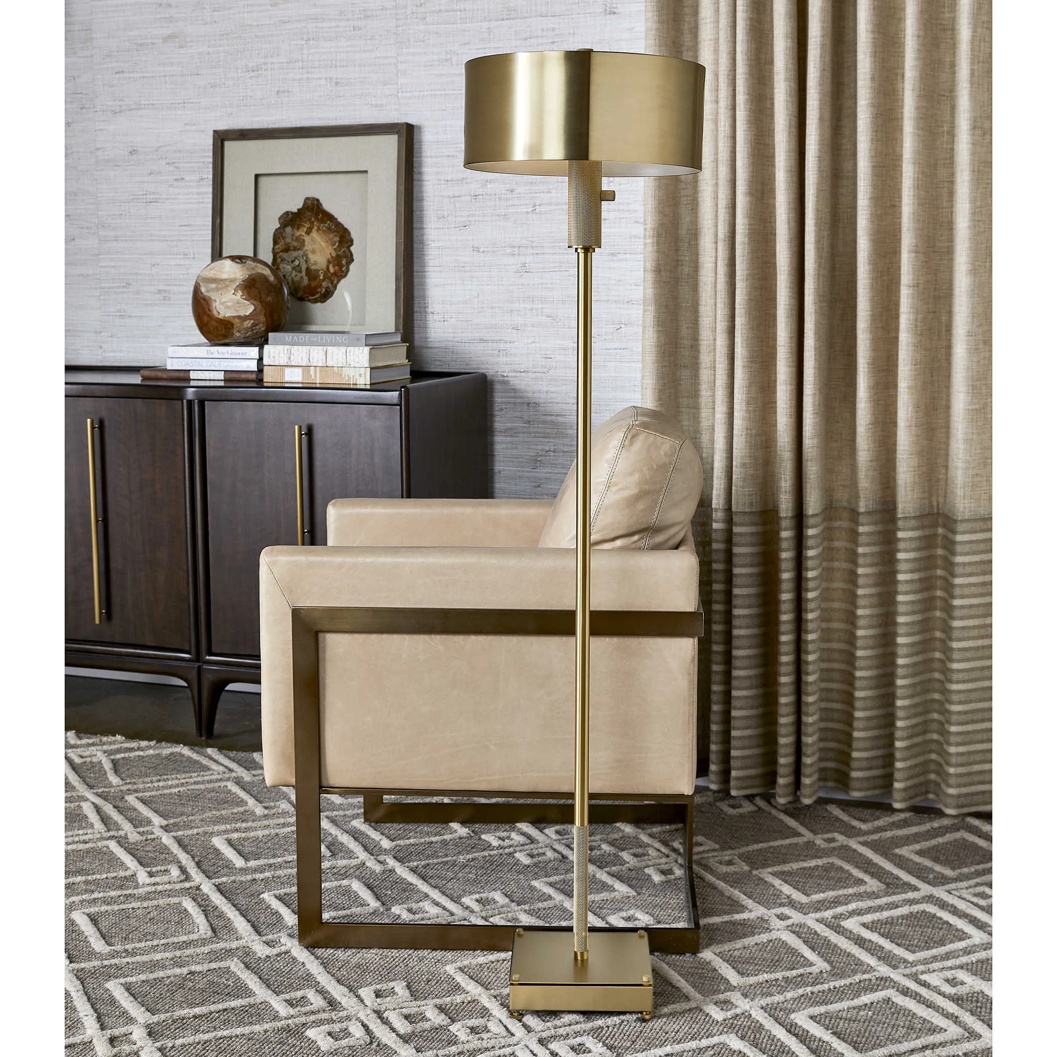 The Knurl Floor Lamp - Brass by Revelation may be available at Four States Furniture in the Texarkana, Hope and Texarkana areas. Please contact us to check availability.