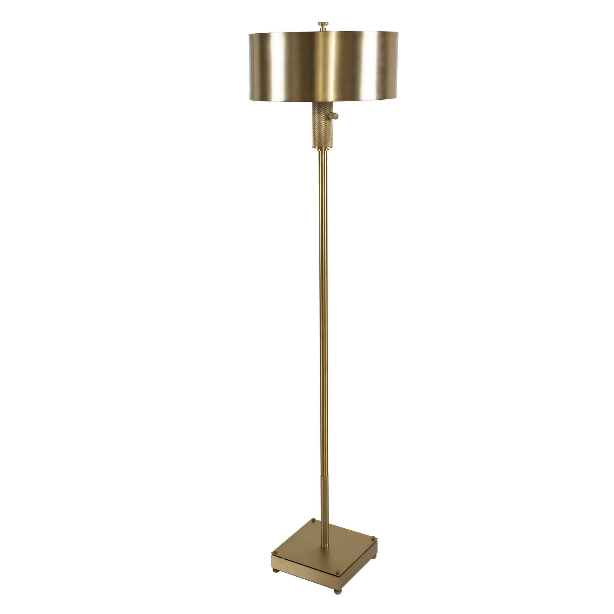 With beautifully clean lines, the Knurl Floor Lamp is perfect to illuminate any chair or sofa side. Its detailing is inspired by industrial tools that add interest and richness. The lamp is finished in a rich satin brass with a complementary metal shade in a rich brass finish. Featuring a rotary dimmer, it provides the optimum functionality.