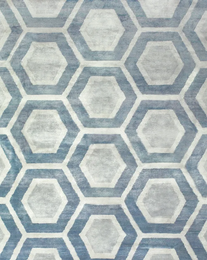 The Noor Collection blends placid tones and clean, modern designs to create serene settings. Tibetan hand knotted in a pile of 100 art silk, these pieces possess a soft hand and a luminous sheen that lend elegance and shimmer to any room.