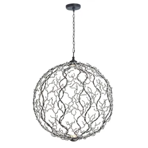 Antique brass finished iron support rods suspend dark honey stained display shelves, encased in an open style mango wood frame, and hand rubbed in worn black with honey undertones.