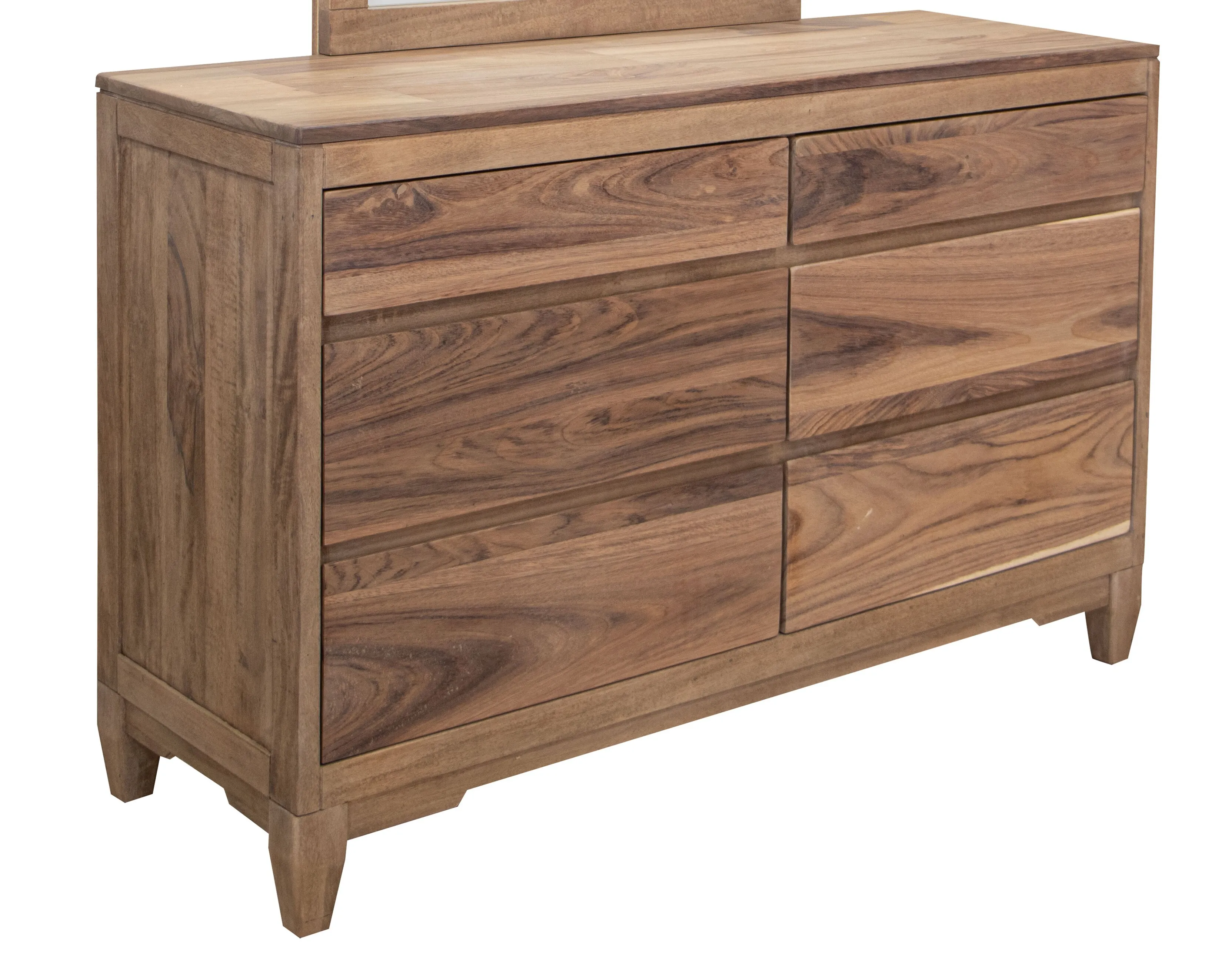 - Six drawers with integrated wood handles. English dovetail on 100% solid wood drawer fronts. Hafele full-extension steel glides.