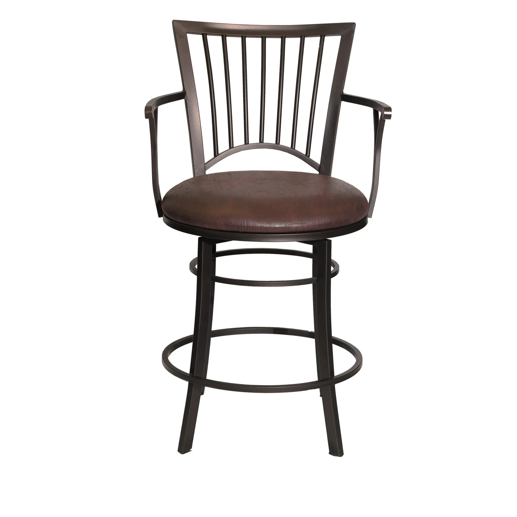A sturdy and comfortable seat at the bar is the promise of the Bayview Counter Stool. An upholstered leatherette seat, 360-degree swivel stool and durable armrests are built in to create a Bar Stool you will have to sit in to believe! The powder-coated, cold-rolled steel is finished in a beautiful gun metal powder-coating that is more scratch resistant than other finishes without sacrificing the beauty of the design in this stately Counter Stool.