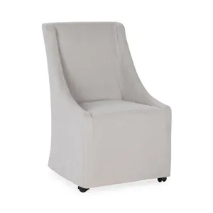 Shane Side Chair (x4) is upholstered in a fabric that blends supple textures with durability. Raw edge stitching gives the formal chair a playful accent that lets it work in any space. A skirt hides Shane's four wooden legs and elongates Shane's attractive form. Comfort and versatility make the Shane Side Chair a standout in any room.