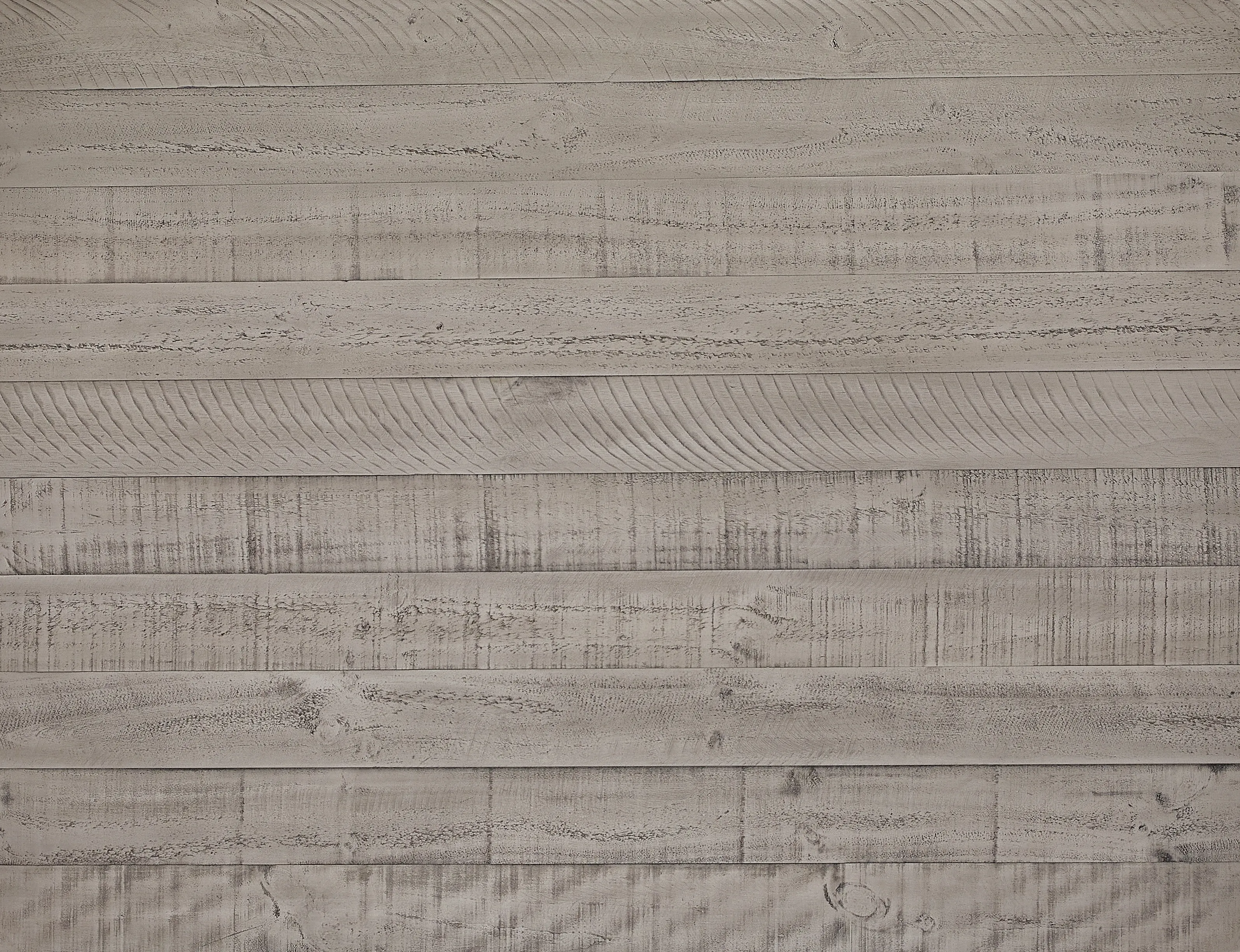 - Distressed weathered gray wood finish