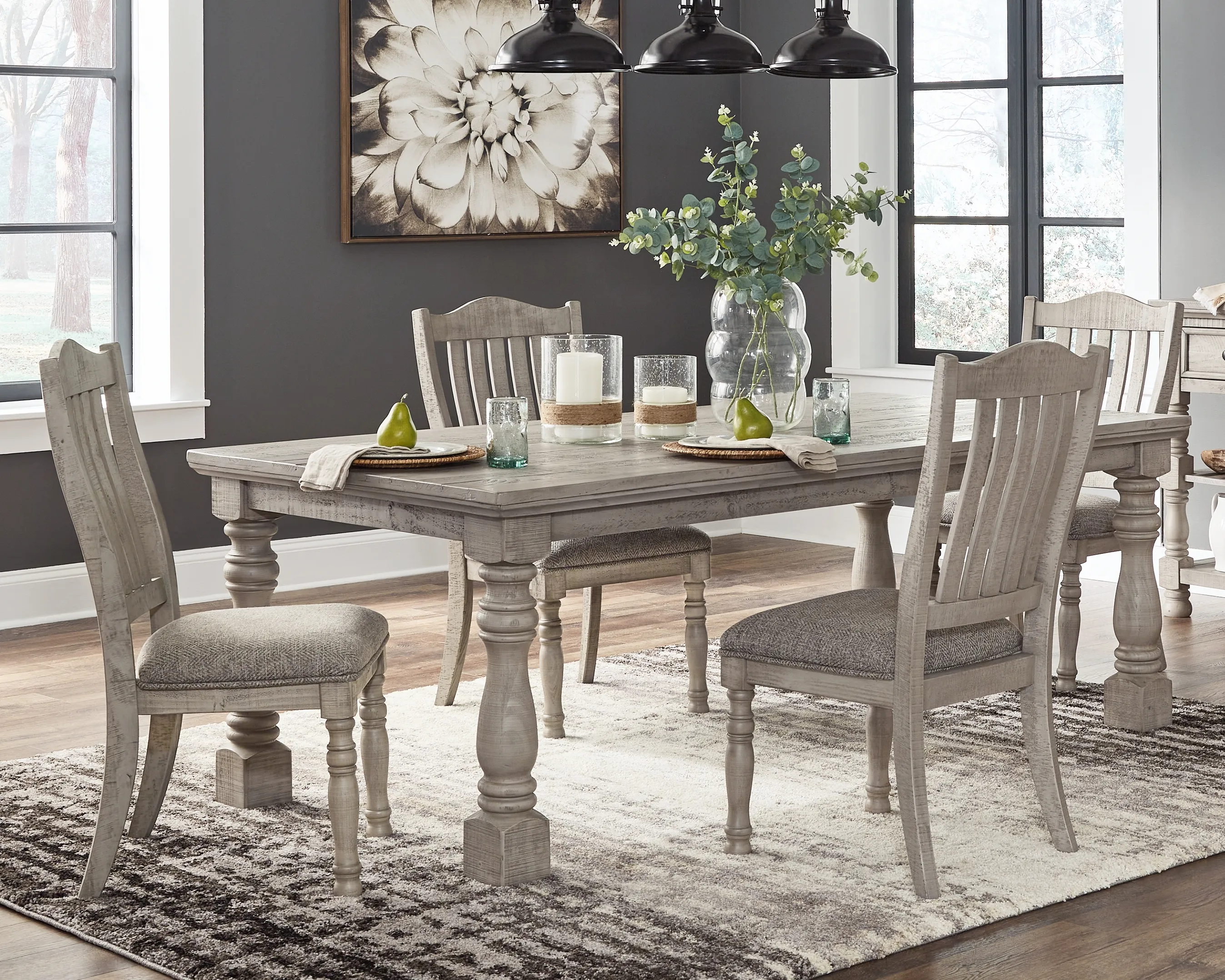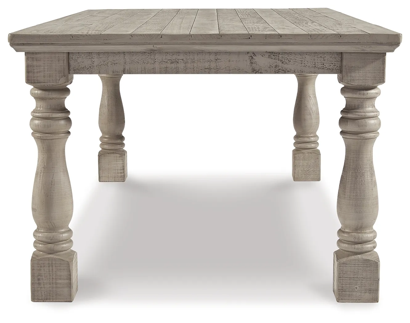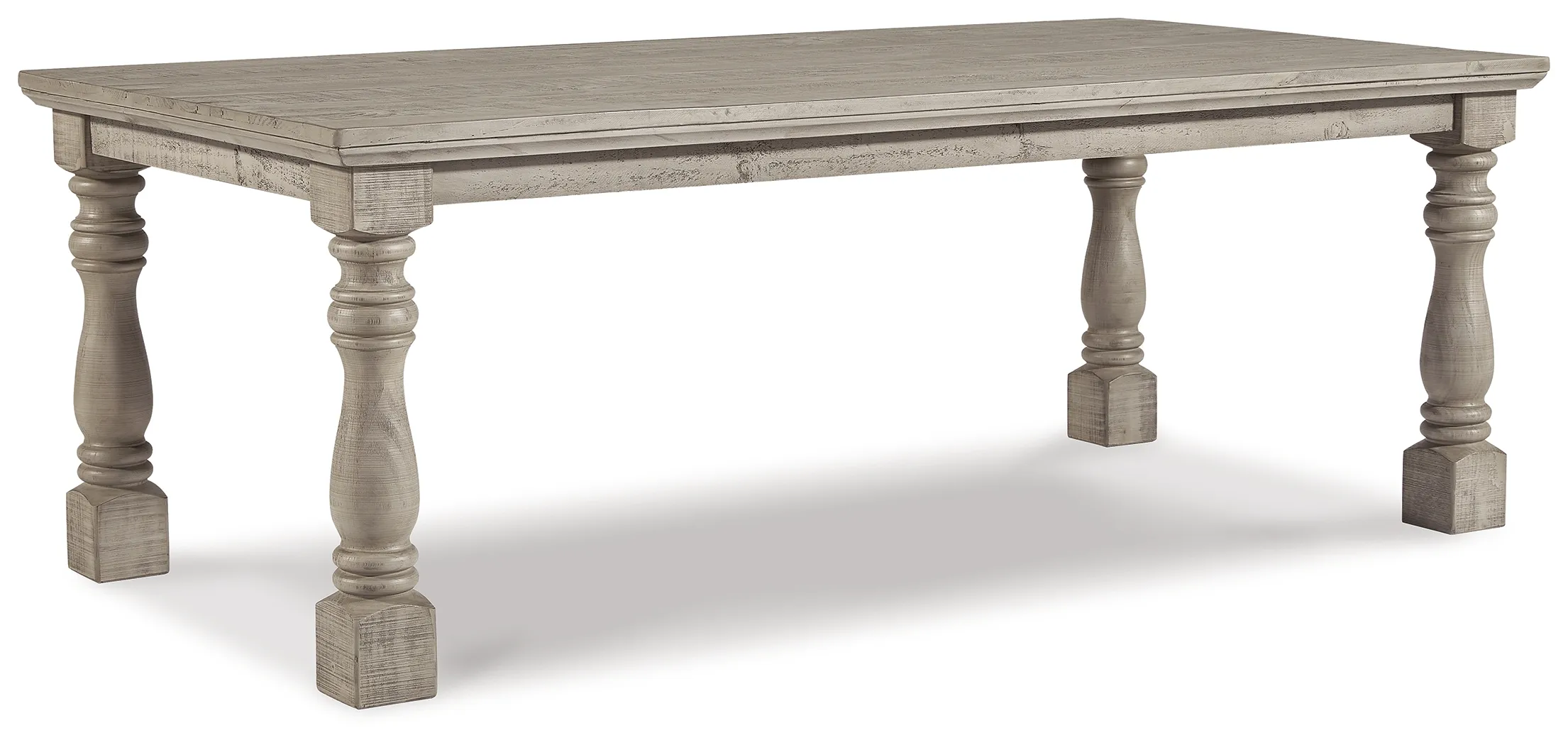 Embrace the feel of a mansion in the countryside when you revel in the romance of this rectangular dining room table. Large, turned legs and a thick planked top have a sense of stately, timeless beauty. The table’s weathered gray finish rounds out the picturesque look.
