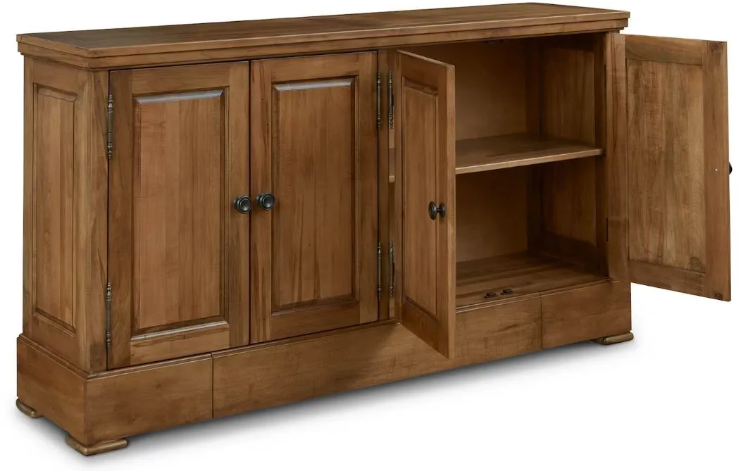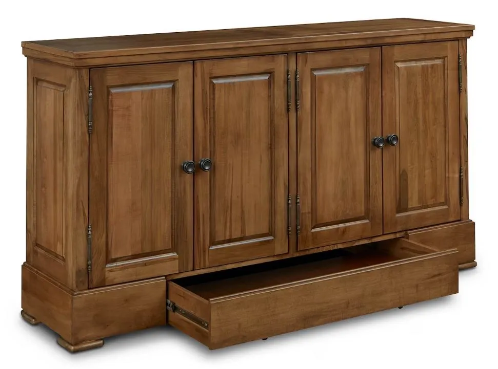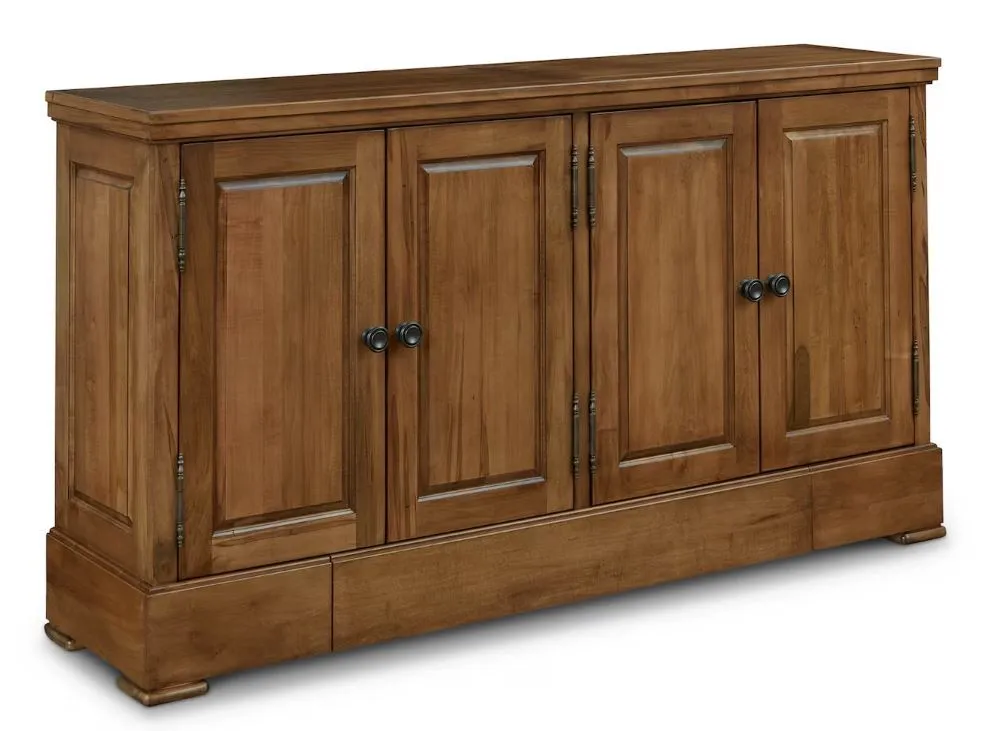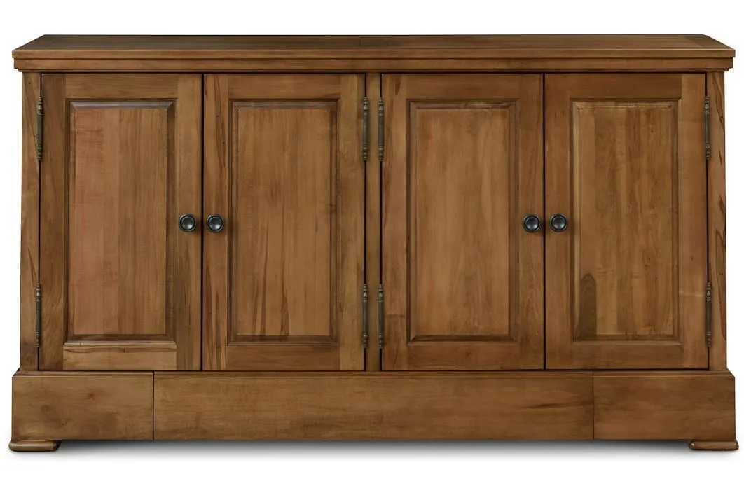 Adding a specially designed drawer to store your table extensions has upped the custom quotient on our artisan-crafted Hawkins Huntboard with Table Leaf Storage. Handmade to your order from solid red-leaf maple, you can use the Hawkins to serve and store everything from serving ware to linens to those table-extending leaves that ensure every guest is graciously accommodated. In addition to the leaf drawer engineered into the base, you have 4 solid wood doors that open to adjustable shelving storage by way of antiqued pewter hardware. The Appalachian maple can be finished to your preference, including a match to the BenchMade Harvest and Crossbuck Dining Tables with Leaf Extensions.