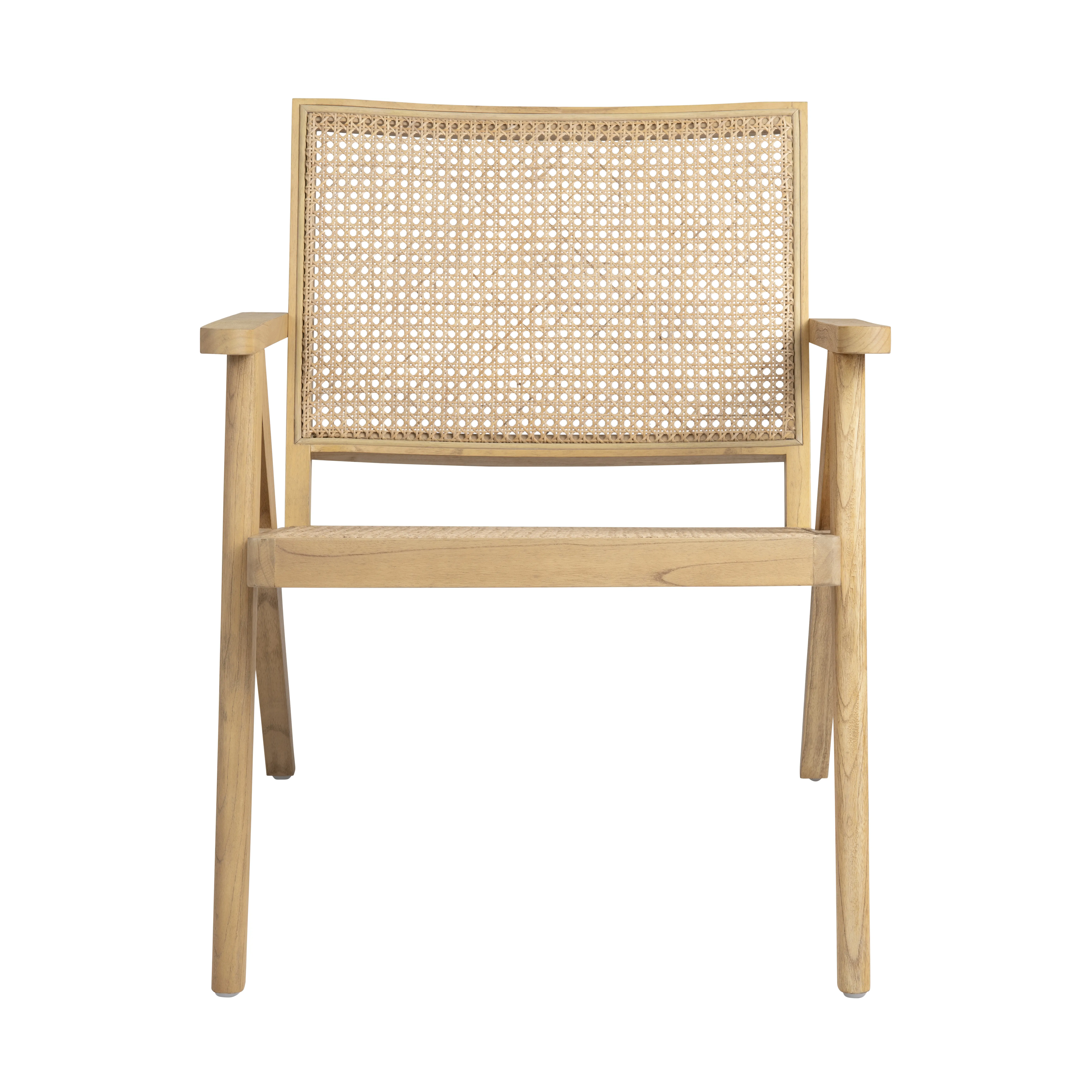 Elevate your seating arrangement with this stylish accent chair, crafted from durable Mindi wood and natural rattan material. Its hand-stained finish enhances the natural wood grain, while the water-based finish ensures a smooth and polished look. The open rattan weave on the backrest and seat provides breathable comfort, blending rustic charm with modern elegance. Perfect as a standalone piece or as part of a set, this chair complements a variety of decor styles, from coastal to contemporary