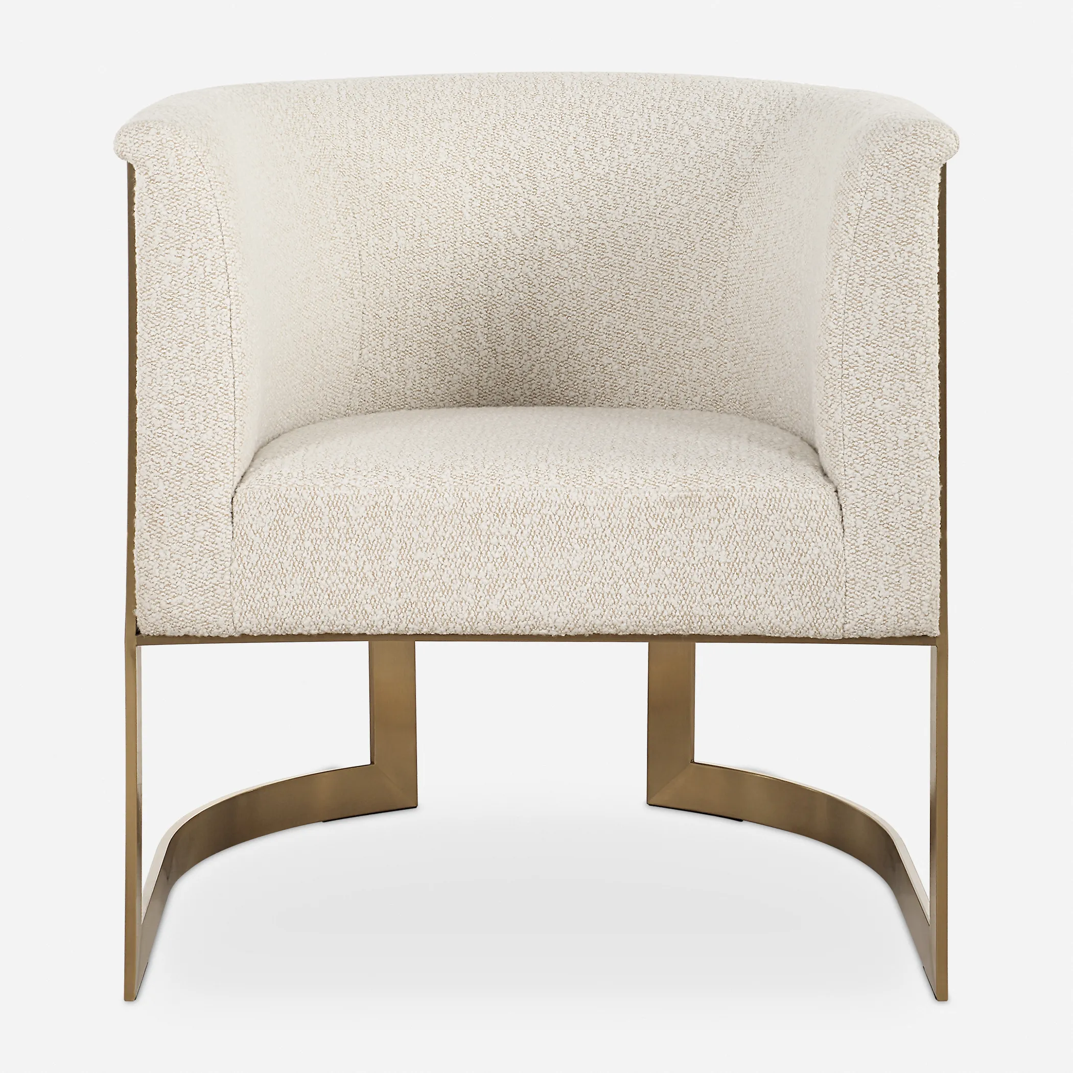 Stunning From Every Angle, The Wrap Around Stainless Steel Frame Is Finished In Brushed Gold, Encapsulating A Plush Seat Upholstered In A Knubby Boucle In Driftwood Tan. Seat Height Is 20".
