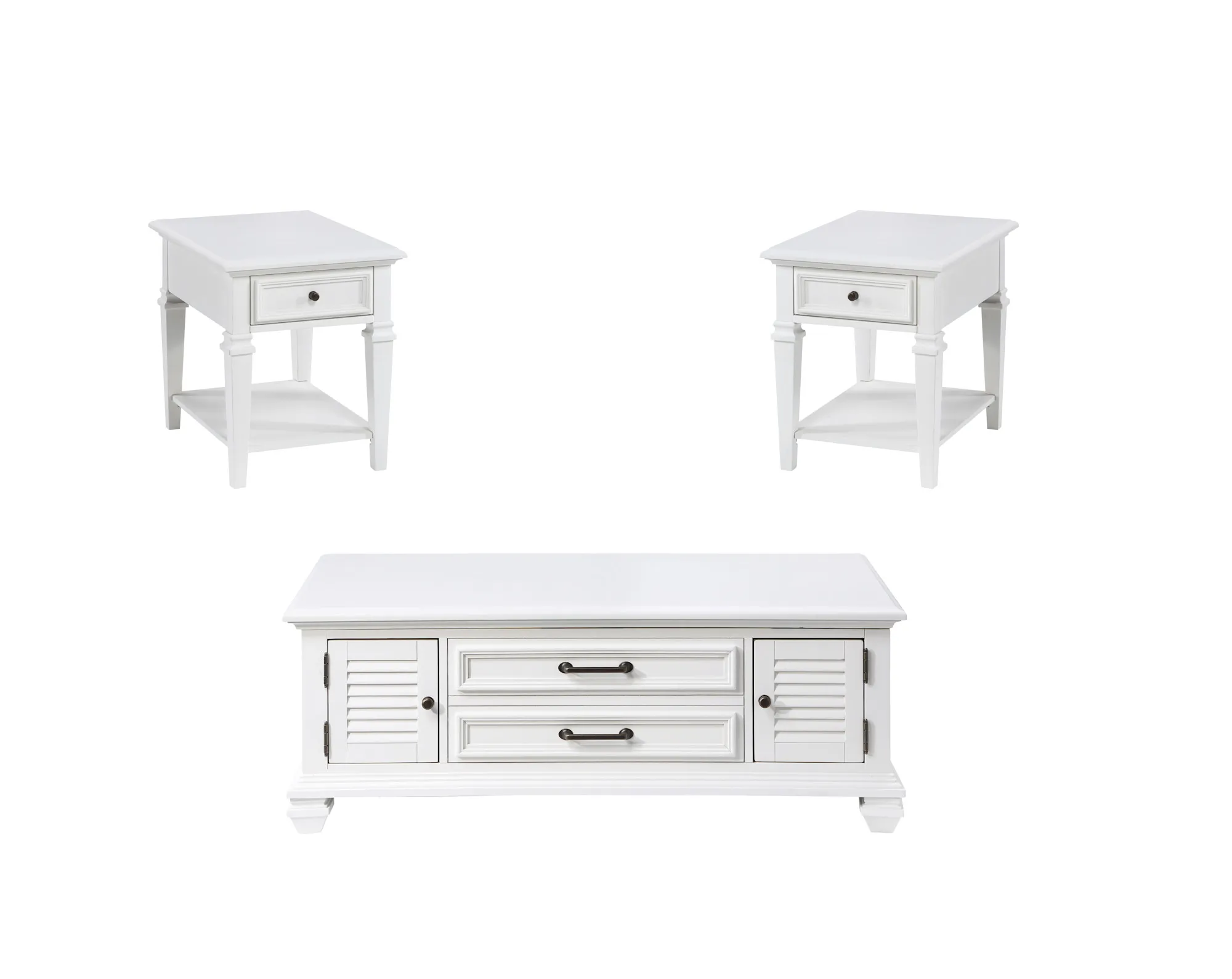 Modern farmhouse design in a compact design that fits comfortably in any room, the Charlestown Lift-Top set offers looks and multiple function to spruce up any room. The Lift-Top Cocktail Table anchors this collection with dual door storage and the "eat from the couch" convenience offered from the lift-top. The Storage End Table offers USB recharging convenience and hidden storage while the End Table offers a more architectural look that complements the cottage elements in the collection beautifully. Mix and match the styles of the collection in a crisp, clean white finish that will brighten any room.