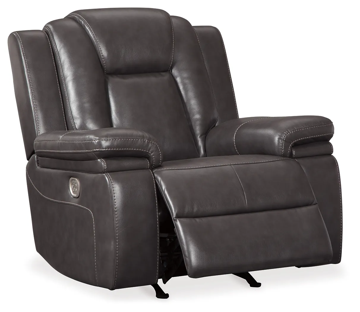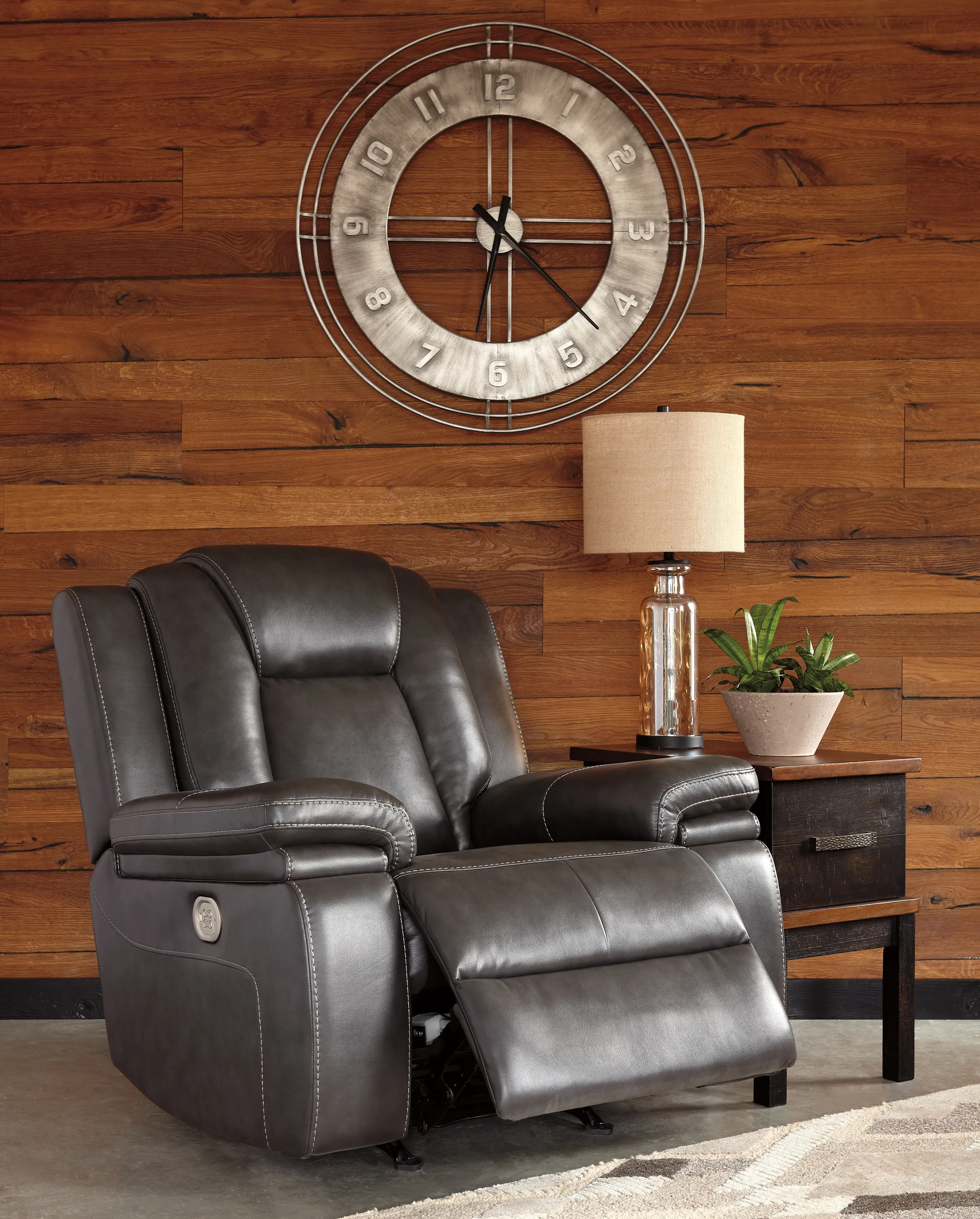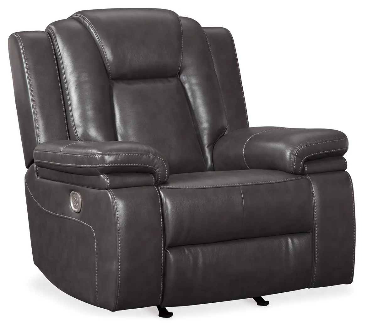 Wouldn't it be great if the cool look of leather could be blended with the warm feel of fabric? Find a beautiful balance of contemporary style and cozy comfort in this power rocker recliner. Sporting a sultry gray UltraPella upholstery, this chic faux leather recliner is empowering in every which way. The Easy View™ power headrest allows you the perfect view of the TV, even when you're lying back. And if you're never far from your cell phone or laptop, you'll surely appreciate the one-touch power control with USB charging port.