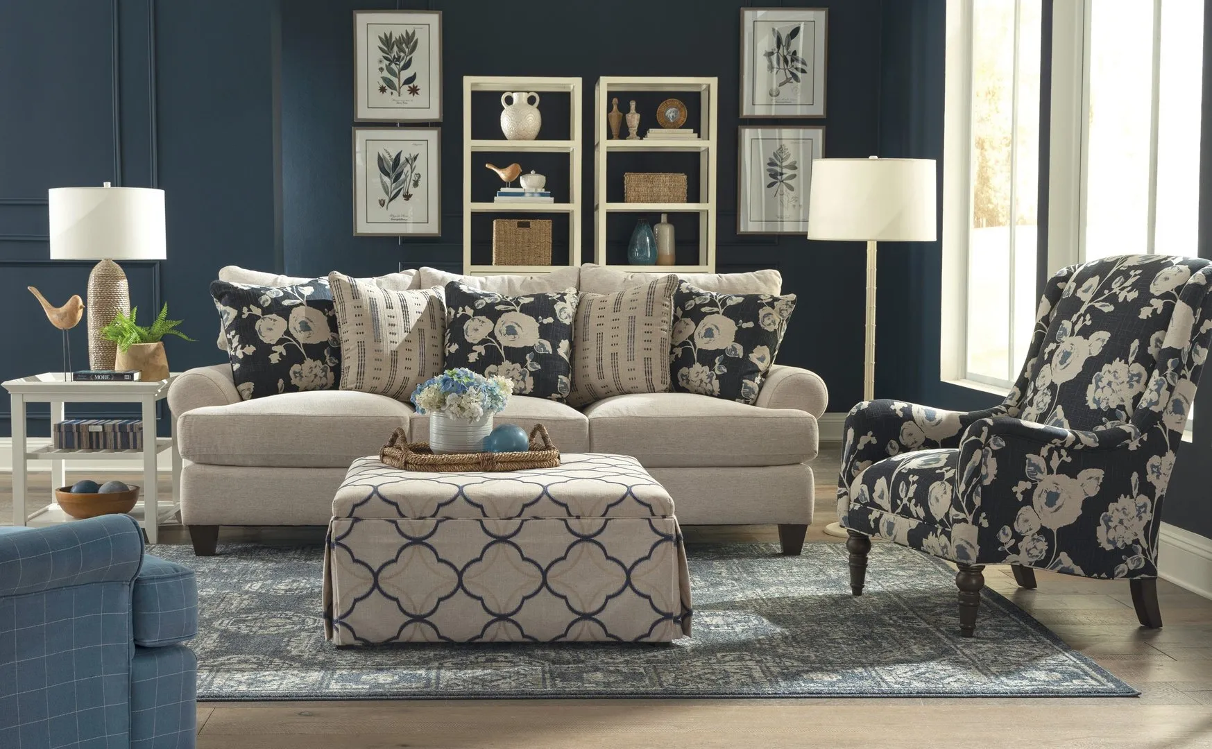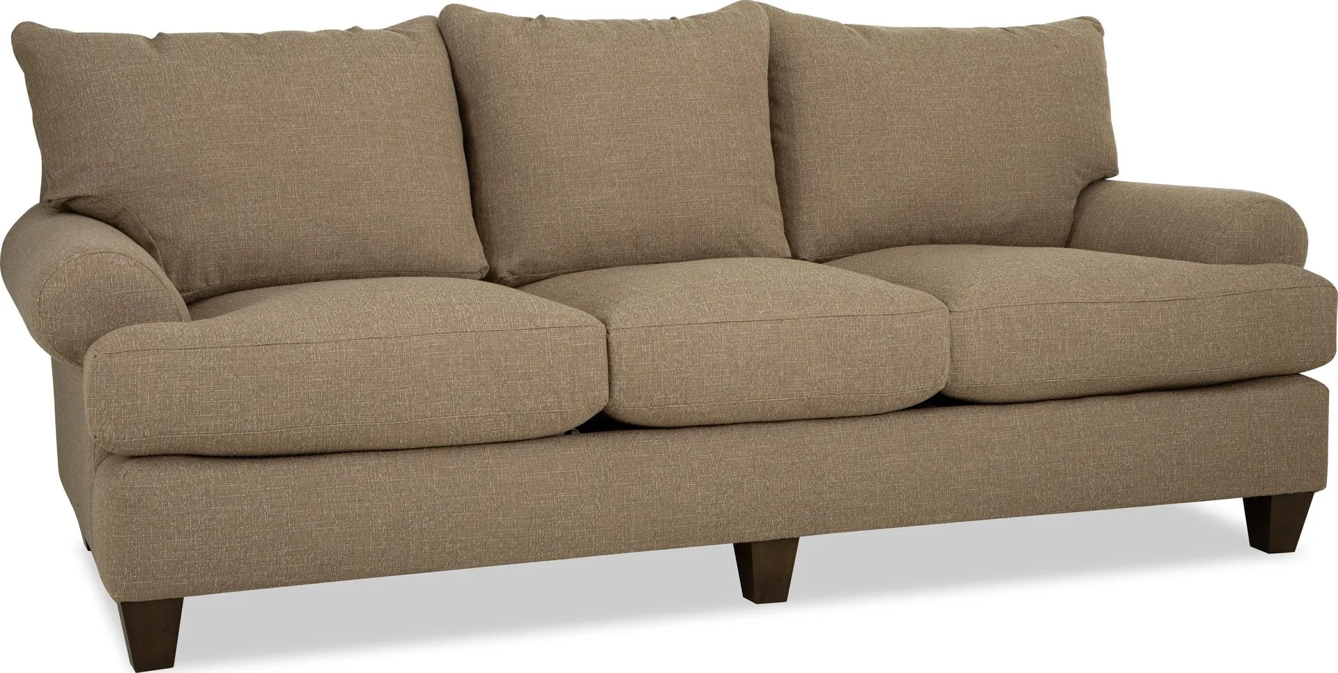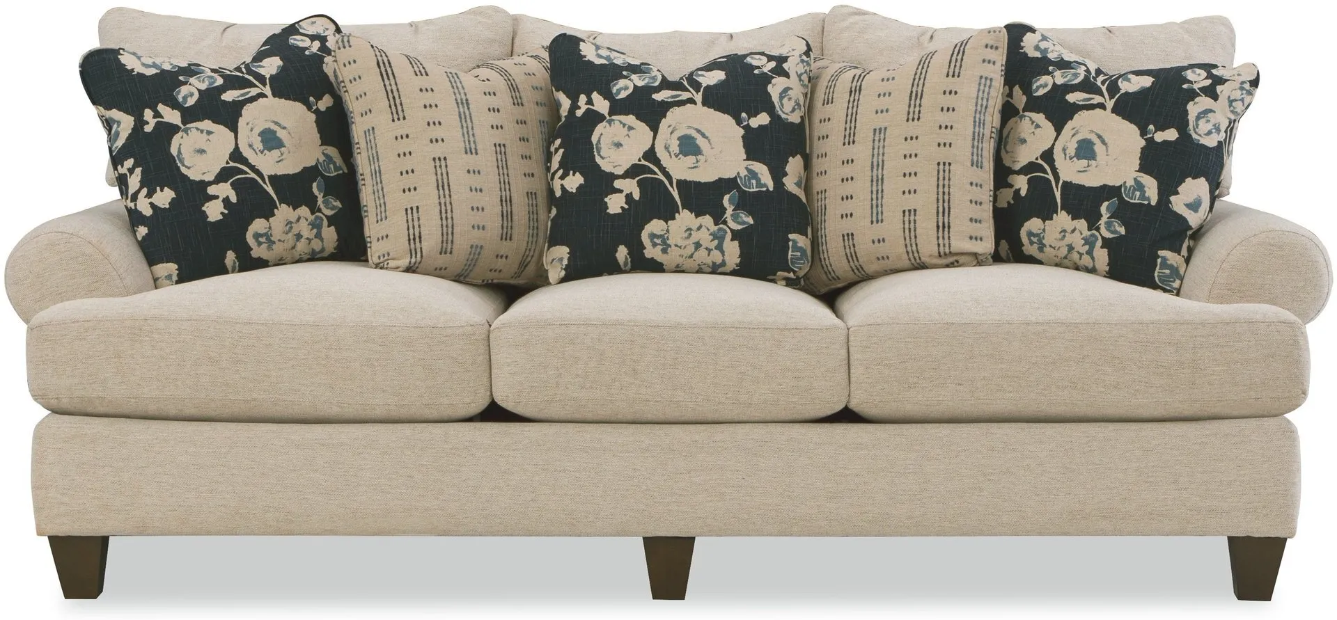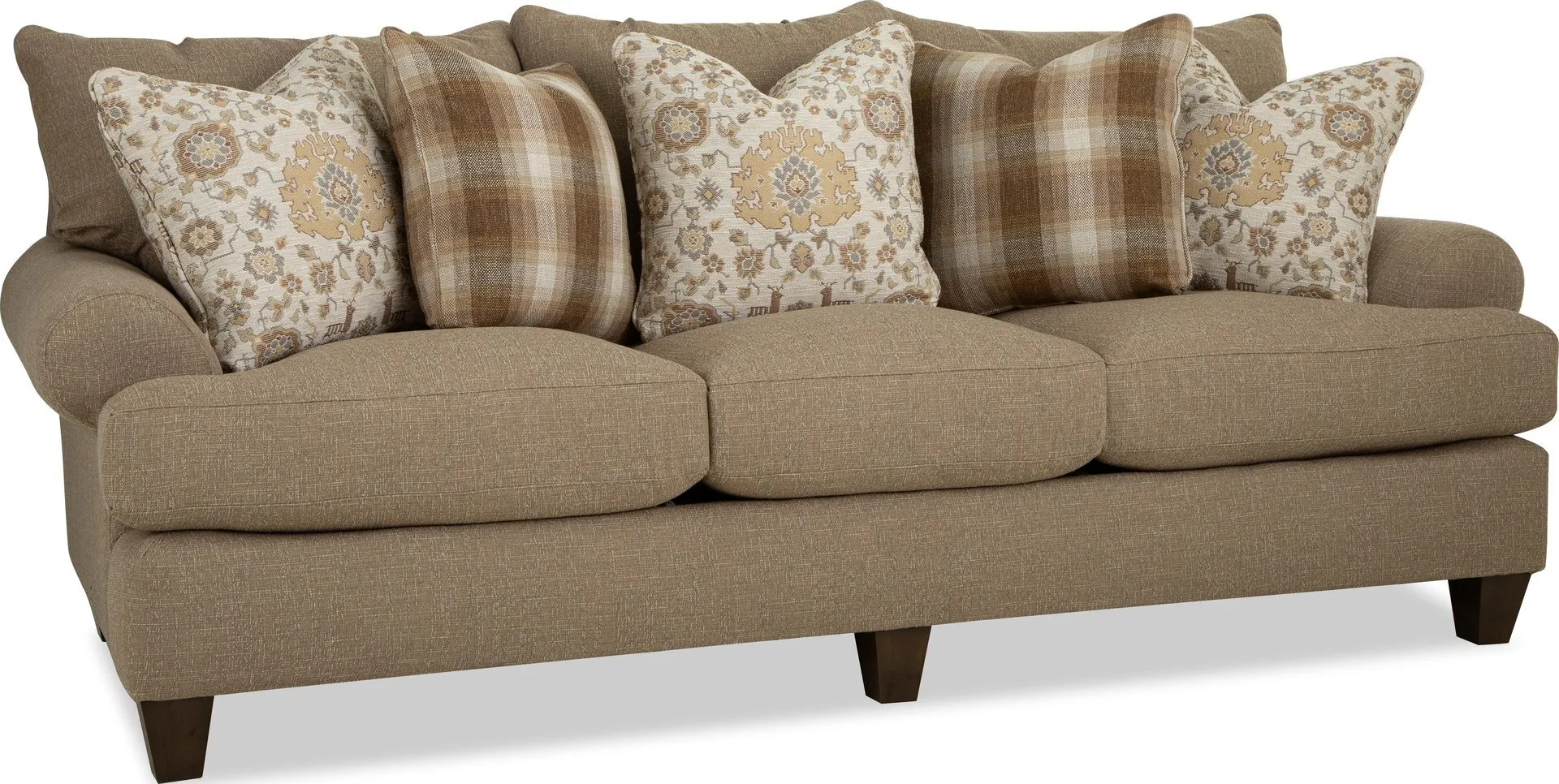 This casual sofa, from the Paula Deen Home collection is one of our favorites and it's easy to see why! For starters, it's a generous 100'' long and features an armload of pillows to curl up and relax on. The loose pillow backs, sock arms, and tapered wood legs give it the laid-back, casual look that Paula is so proud of! It also features her exclusive Down Blend cushions that wrap you in comfort from the first moment, but will last for years. This style is also available as a 2 -piece sectional in varying sizes. Also available are the matching loveseat, chair 1/2, ottoman.