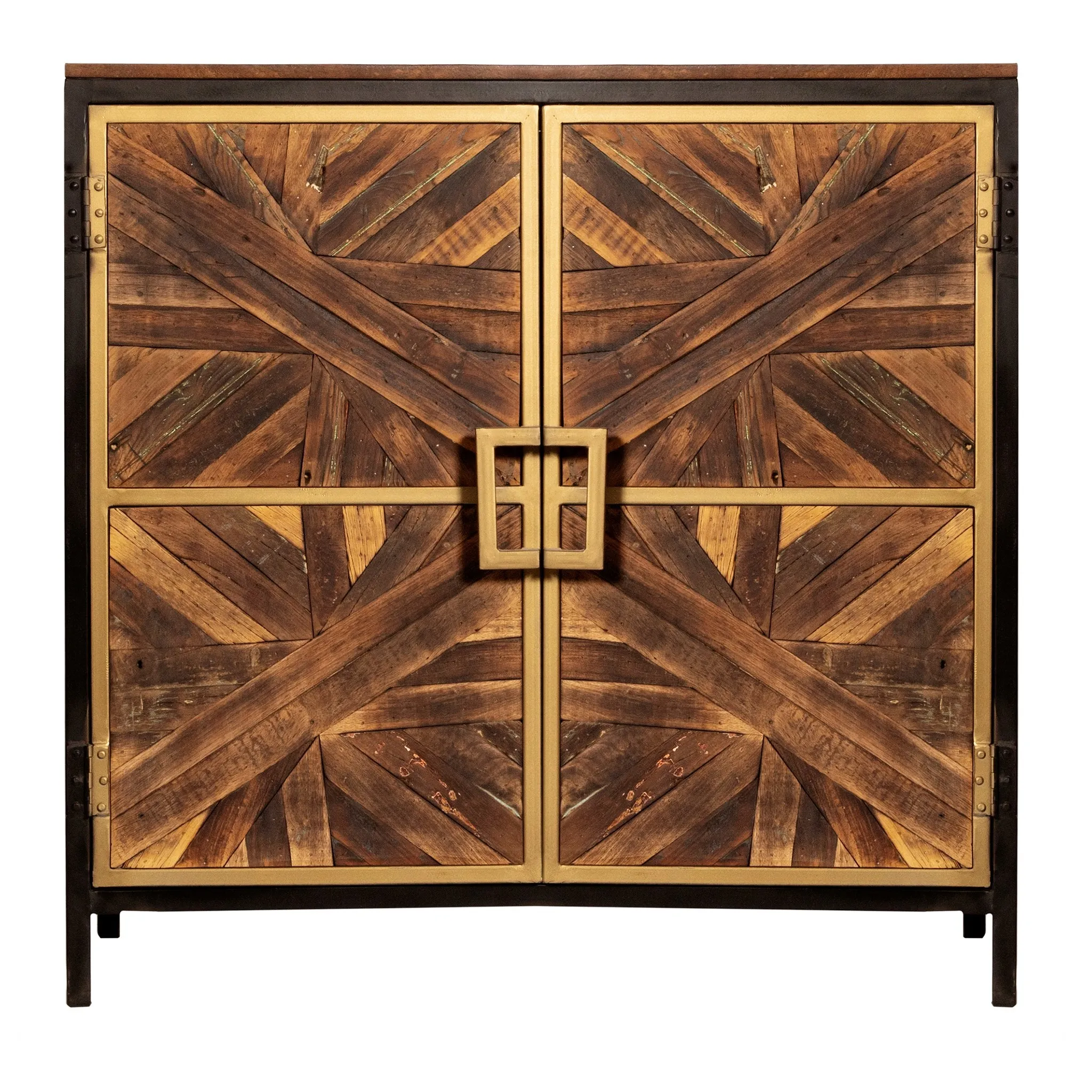 ATHENS CABINET | Reclaimed Walnut Finish on Mango Wood with Black and Gold Finish on Metal Frame | 2