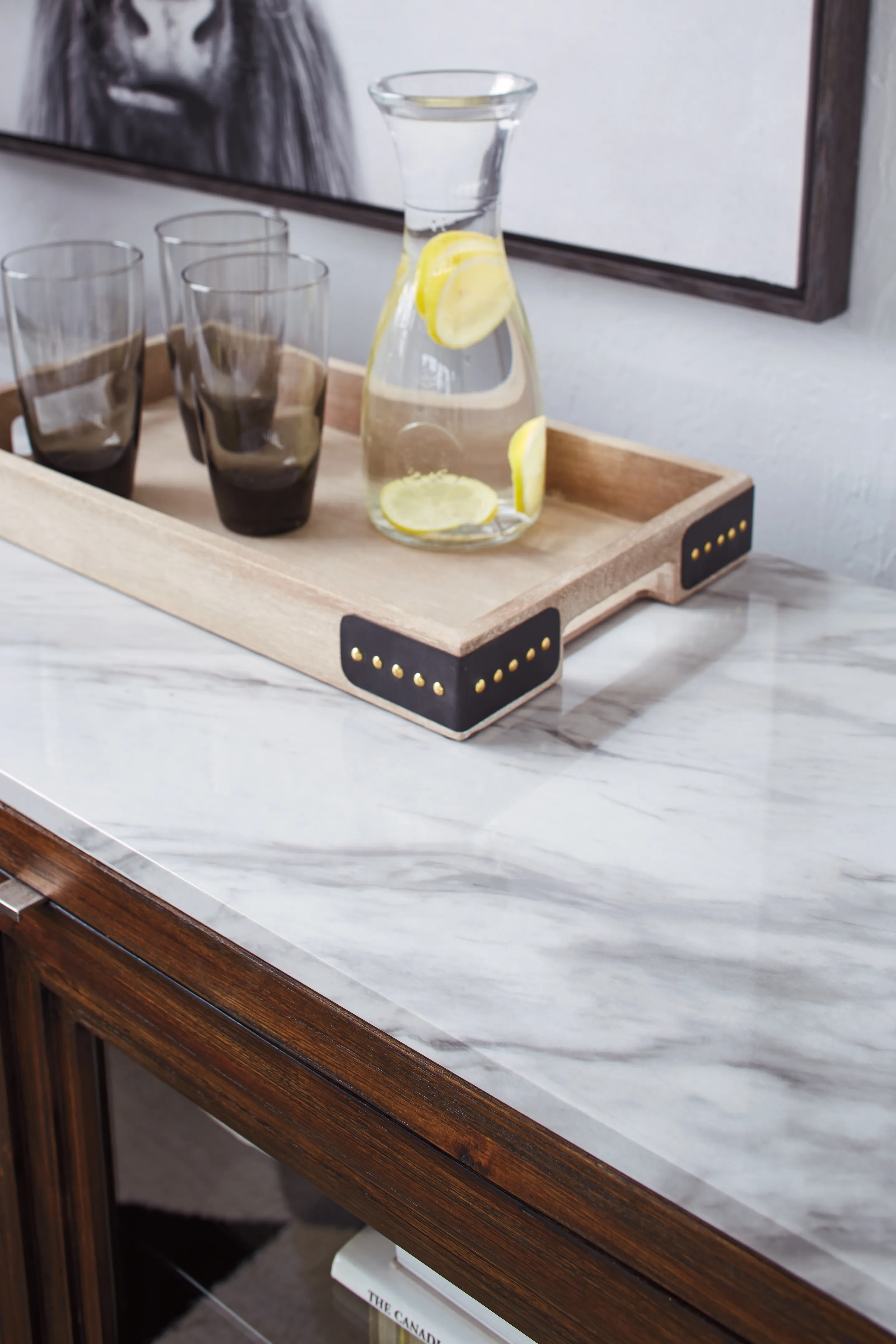 White faux marble top