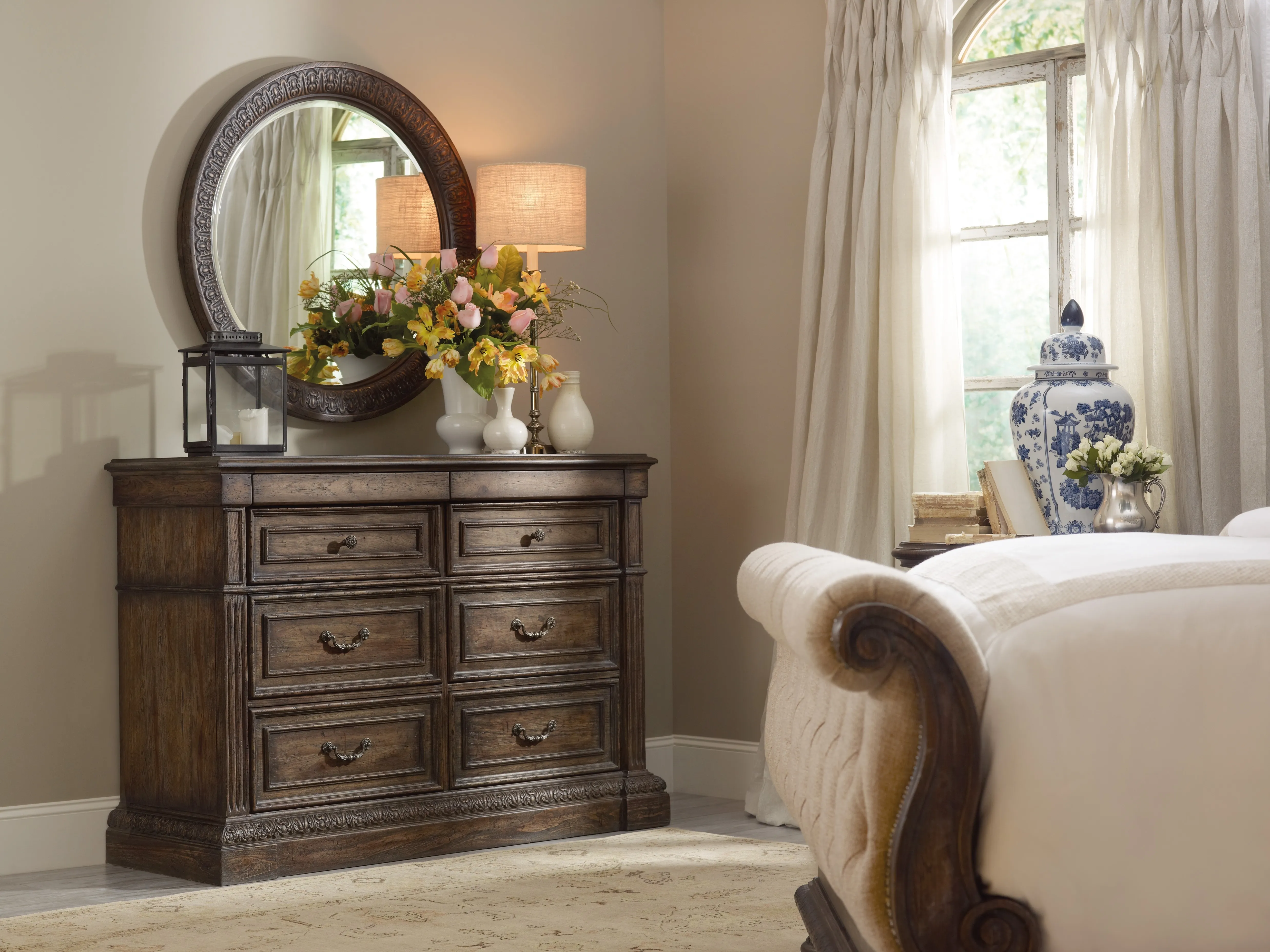 Hooker Furniture offers full height, full depth and full width drawers for maximum storage capacity. All drawers have strong, time-tested English or French dovetail construction, for years of problem-free use. Plywood drawer bottoms are attached to plywood drawer sides for strength and durability. Metal side guides or wood on wood guide systems operate smoothly.
