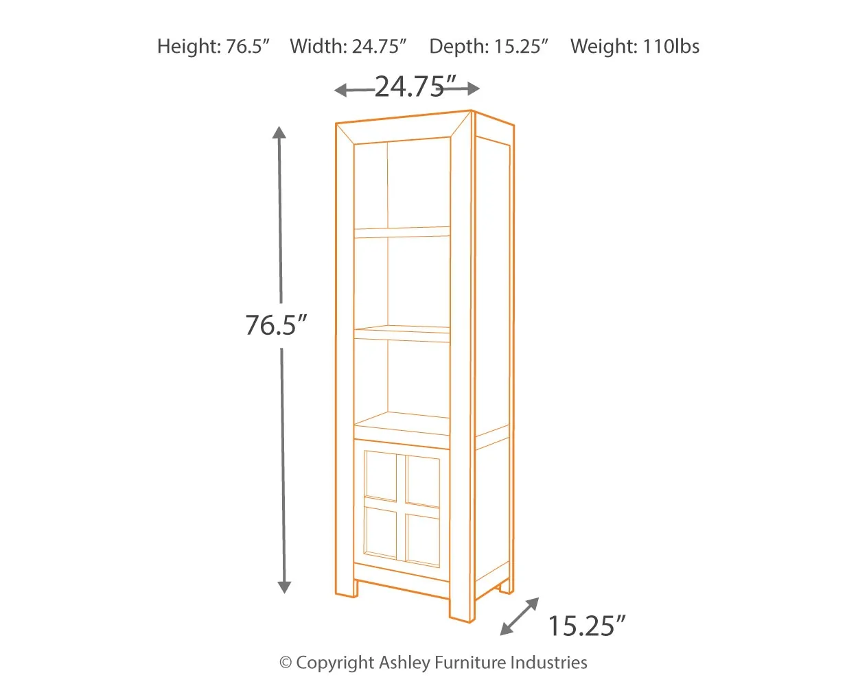 | Adjustable top shelf (2) width | 22.75" |