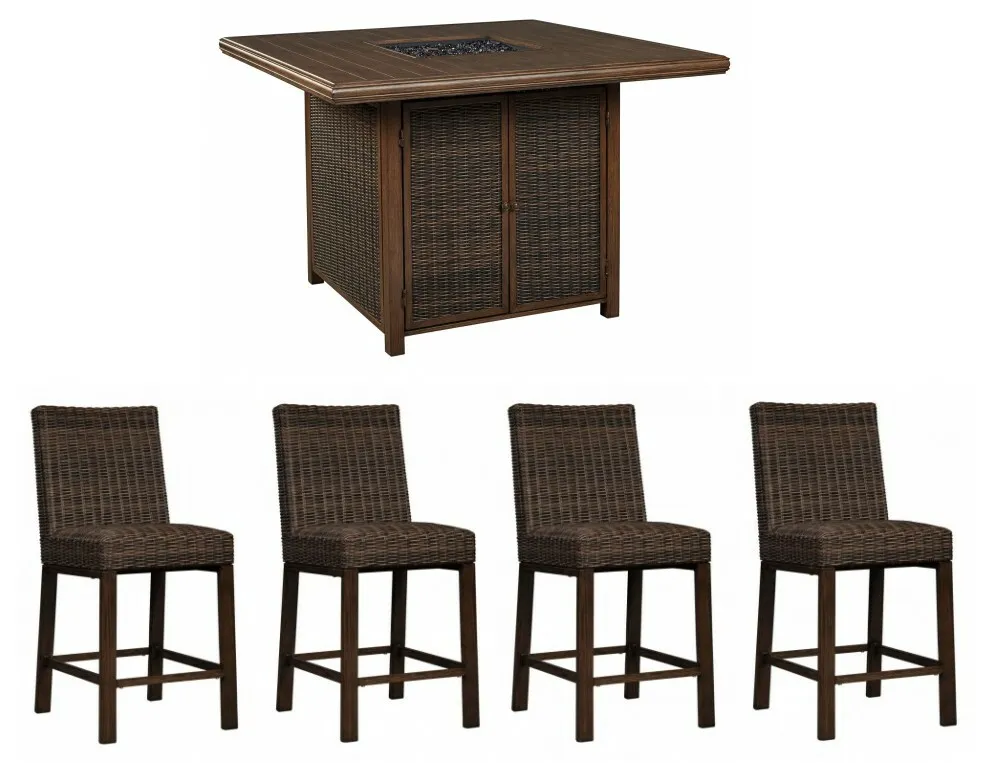 Paradise Trail 5 PC Bar Table with Fire Pit Set includes table and 4 stools